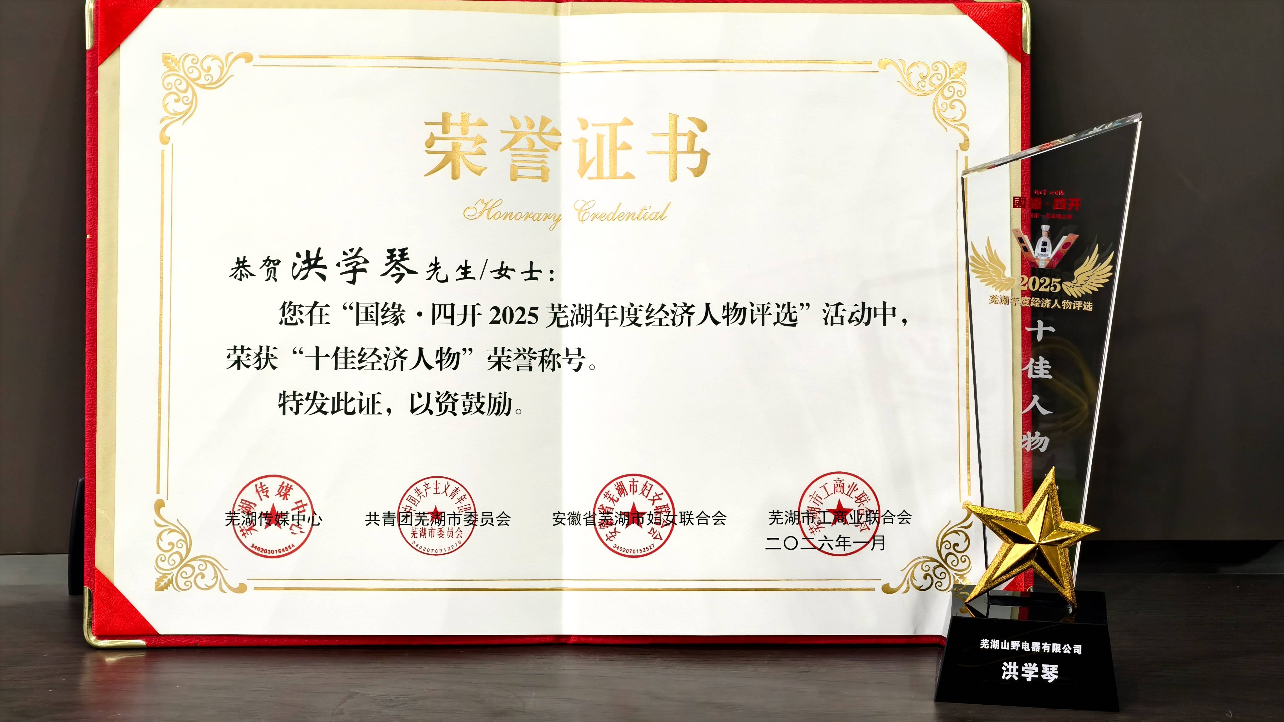 2月6日下午,“国缘四开”2025年芜湖市年度经济人物颁奖典礼在芜湖传媒中心隆重举行。莱充科技董事长洪学琴女士凭借其在绿色能源领域的卓越贡献,荣膺“2025年度芜湖市十佳经济人物”称号。